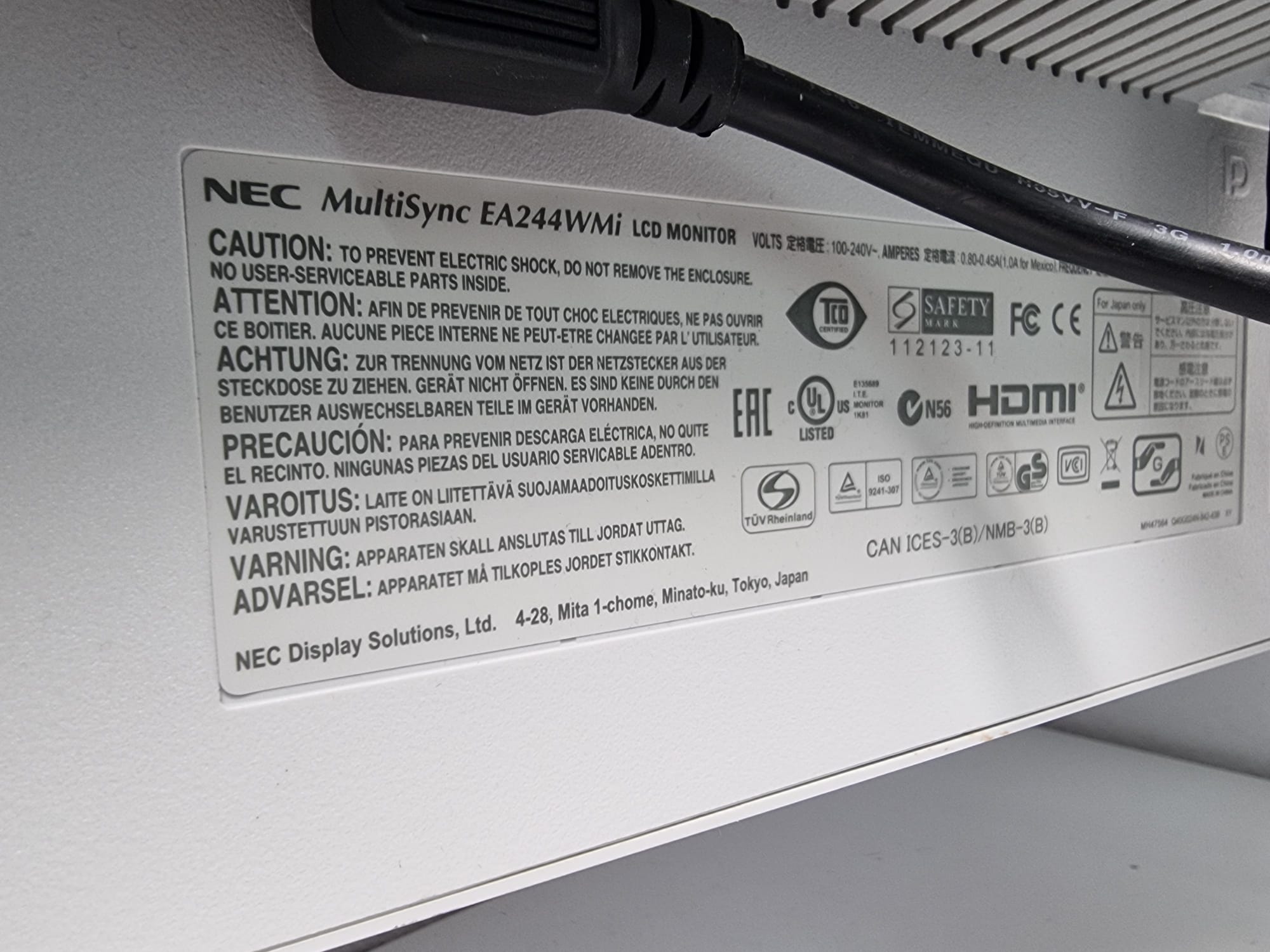 NEC MultiSync EA244WMi 61 cm (24,1 Zoll) LED LCD Monitor 1920x1200 weiß HDMI DisplayPort DVI VGA USB Lautsprecher